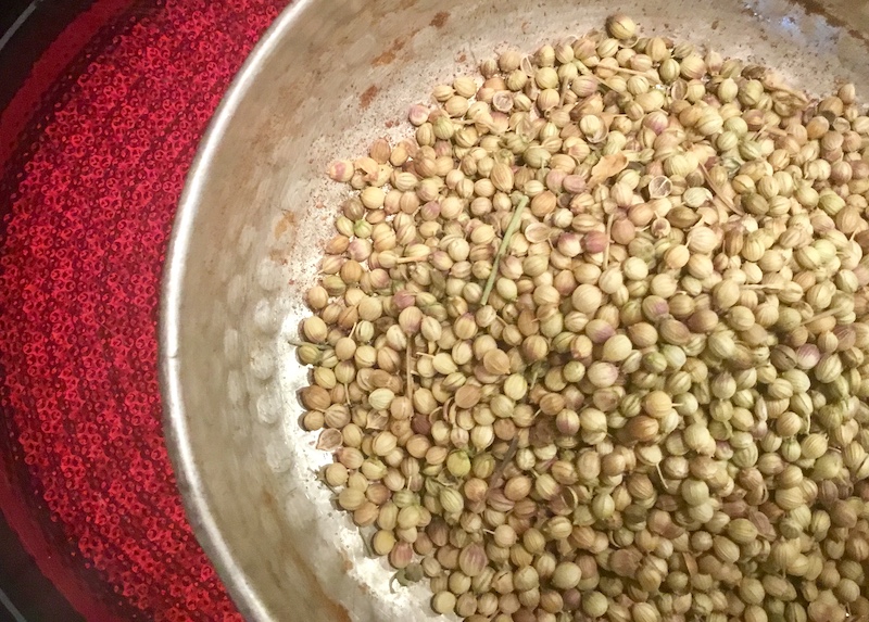 Tane kişnişler biraz kavrulup, sonra havanda eziliyor. O sırada yayılan koku olağanüstü.