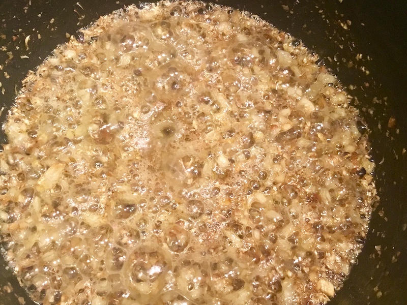 Kişnişiniz hazırlanırken diğer yanda da tereyağında soğanlarınızı biraz şeker ile kavuruyor, sonra da kişnişinizi ekliyorsunuz.
